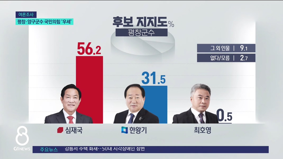 <여론조사.13> 평창·양구군수 국민의 힘 '우세'