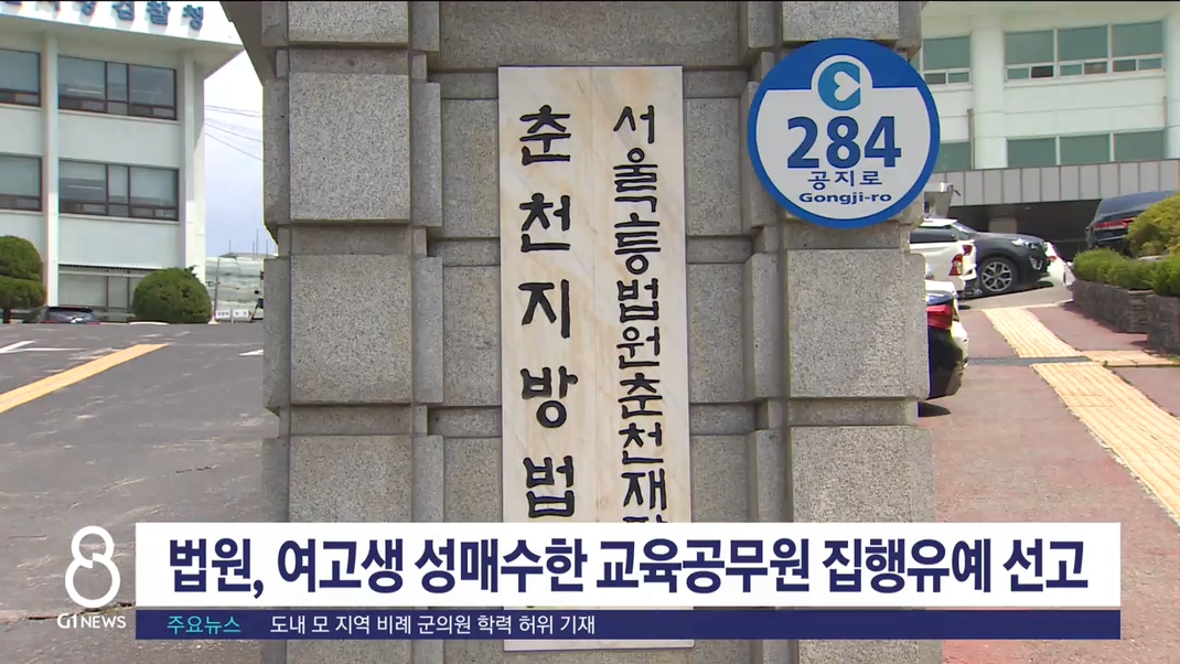 여고생 성매수한 도내 교육공무원 집행유예 선고