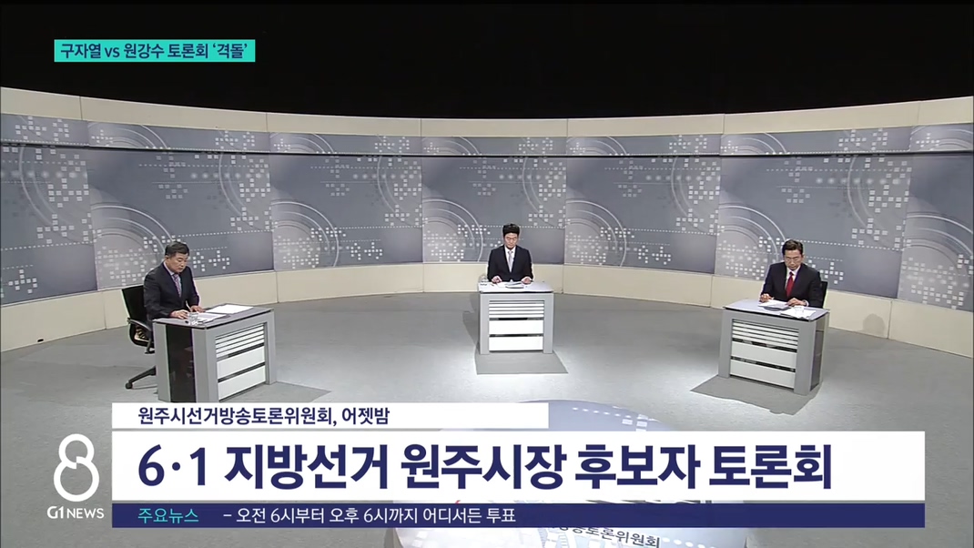 선거방송토론위원회가 주관하는 원주시장 후보자 토론회도 어젯밤에 열렸습니다.