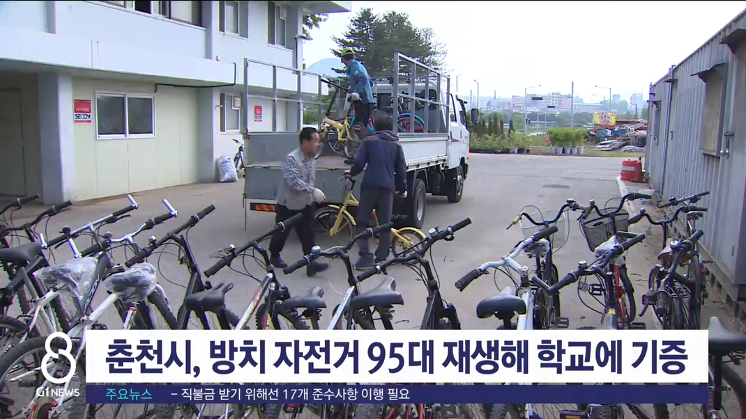 춘천시가 공공장소에 방치된 자전거를 수거해 재활용한 자전거 95대를 지역내 12개 학교에 전달합니다.