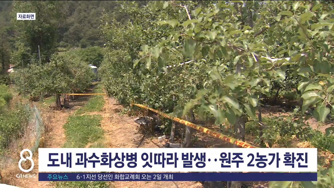 지난주 평창에서 올해 첫 과수화상병이 발병한데 이어, 오늘(31일) 원주에서도 2개 농가가 추가로 확진됐습니다.