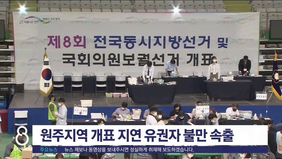 이번 제8회 전국동시지방선거에서 원주지역의 개표 지연으로 유권자들의 불만이 많았다는 지적에 대해 원주시선거관리위원회는 사전투표함 이송에 시간이 오래 소요됐기 때문이라고 밝혔습니다.