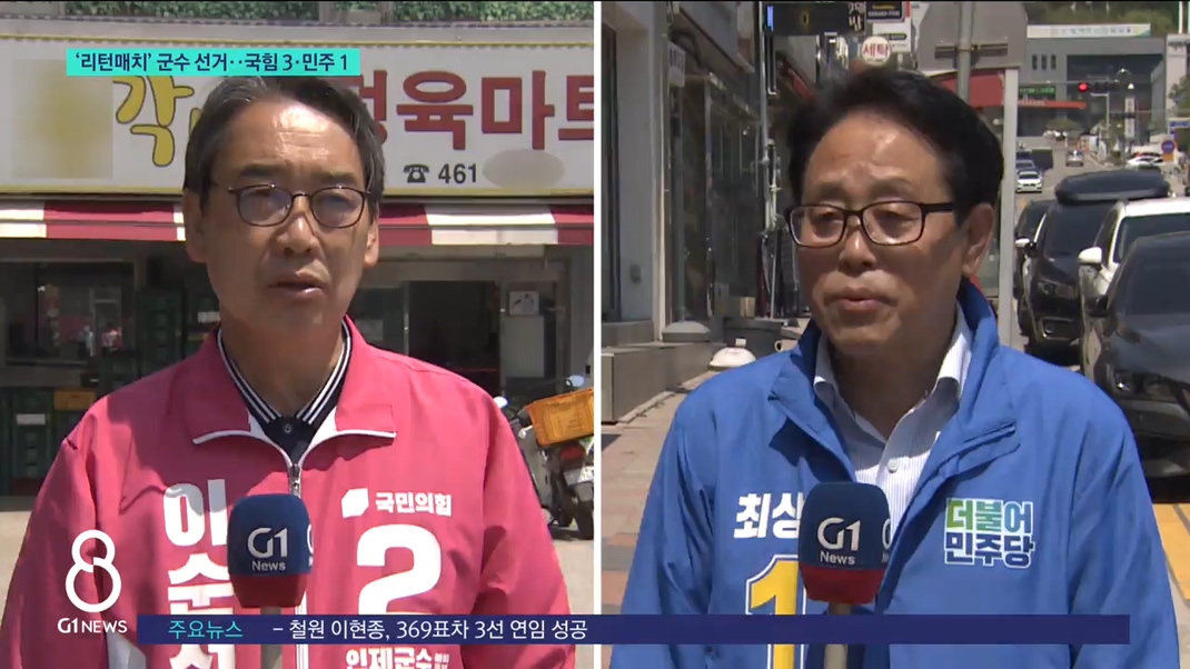 도내 군수 선거 4곳에서 재대결이 성사됐는데요.