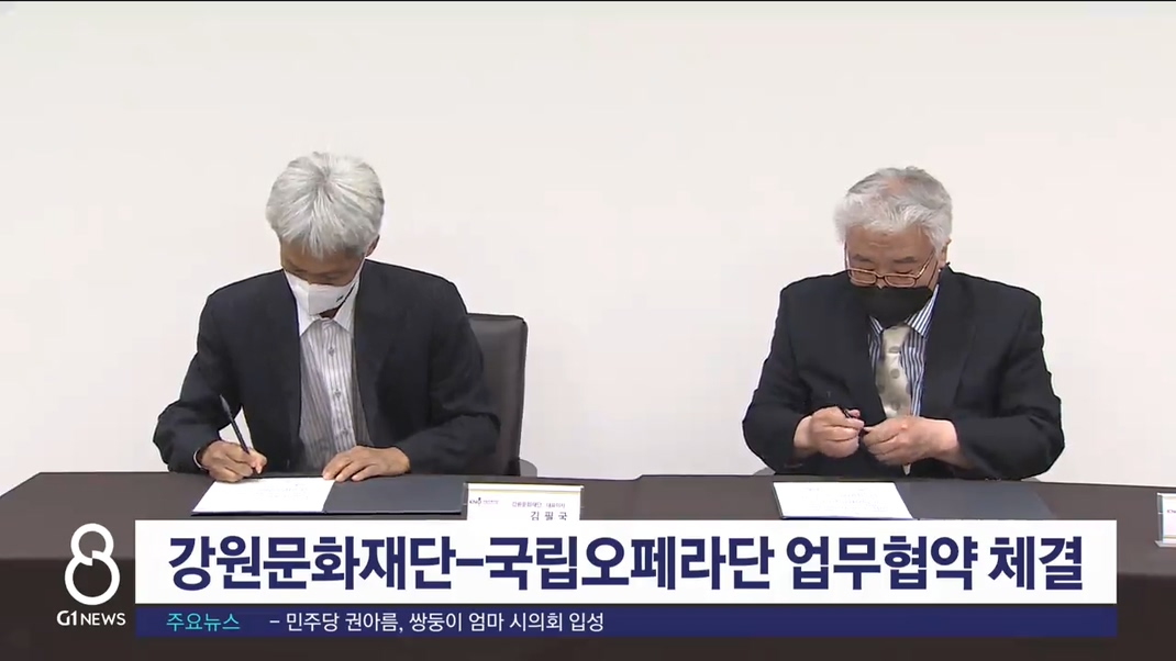강원문화재단과 국립오페라단은 오늘(3일), 서울 예술의 전당에서 강원문화재단 강금실 이사장과 국립오페라단 서정진 이사장 등이 참석한 가운데 업무협약을 체결했습니다.