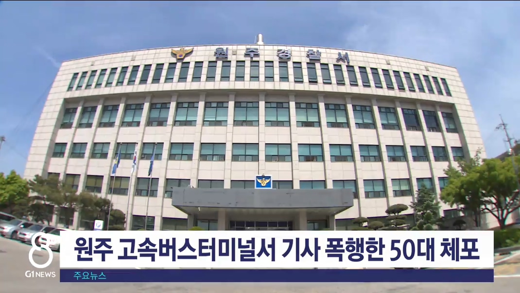 오늘 오후 5시 20분쯤, 원주시 단계동 고속버스터미널에서 일면식도 없던 기사를 폭행한 남성이 경찰에 붙잡혔습니다.