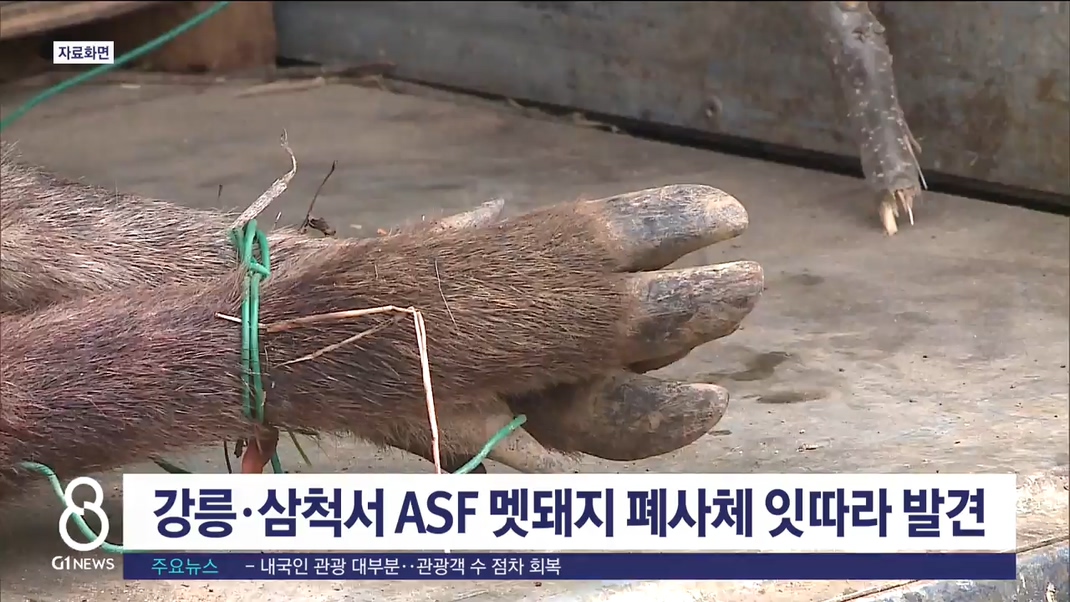 강릉과 삼척에서 아프리카 돼지열병에 감염된 야생멧돼지 폐사체가 잇따라 발견됐습니다.