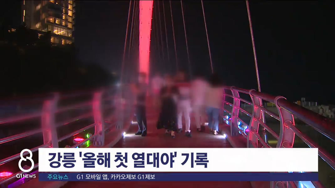 강원지방기상청은 밤사이 강릉지역 최저 기온이 25.1도를 기록해 올해 첫 열대야가 발생했다고 밝혔습니다.