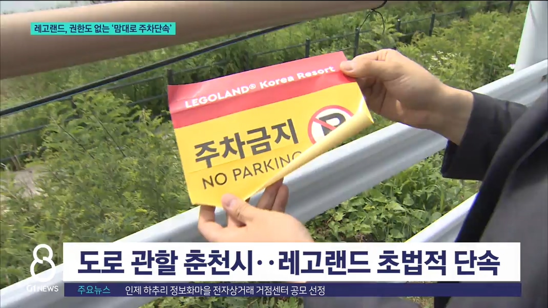 "춘천시민들이 꼭 레고랜드뿐만 아니라 하중도 생태공원이나 아니면 낚시하시는 분들도 거기가 워낙 다른 공간이 협소하다 보니까 차를 대시곤 하시는데, 레고랜드에서 일방적으로 쫙 스티커를 붙여놨더라고요."
