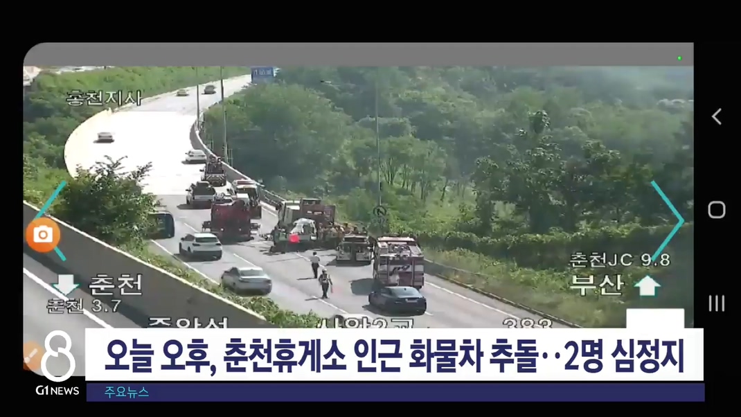 춘천휴게소 인근서 화물차 추돌‥2명 심정지