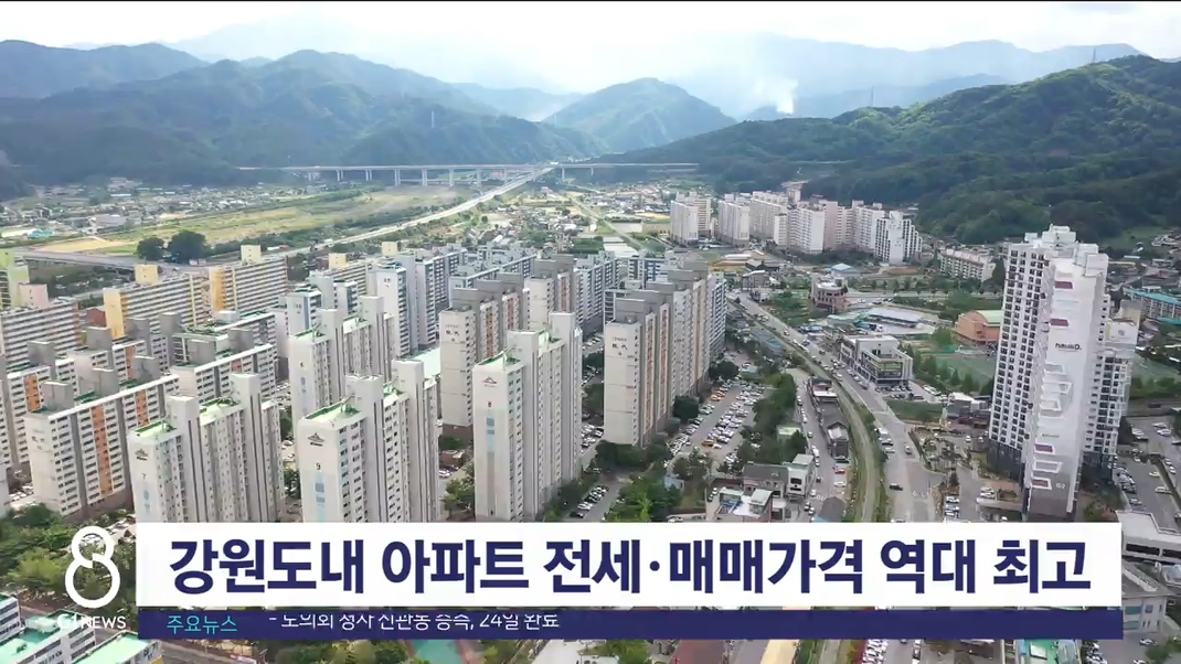 강원도내 아파트 평균 전세가격과 매매가격이 역대 최고가를 기록했습니다.
