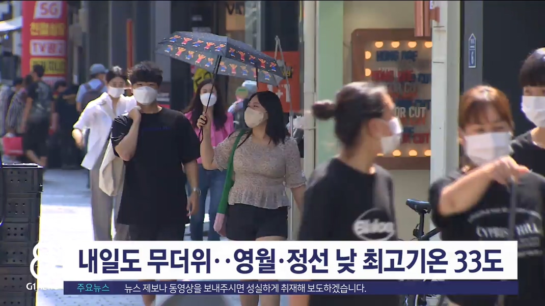 내일도 무더위 지속‥영월·정선 낮 최고 33도