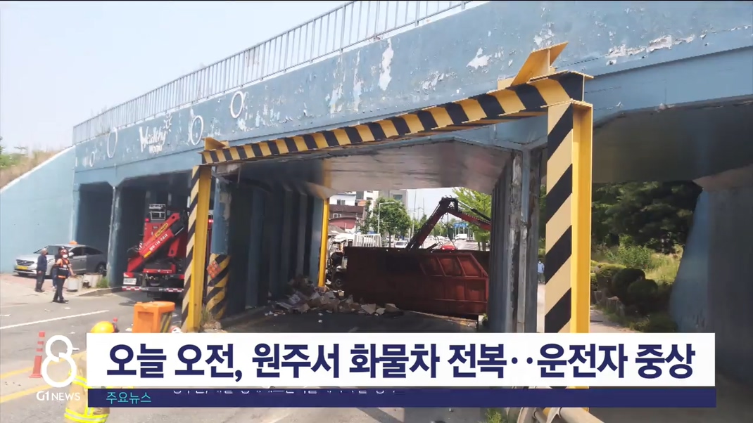 오늘 오전 10시 45분쯤, 원주시 평원동의 한 도로에서 화물차가 전복됐습니다.