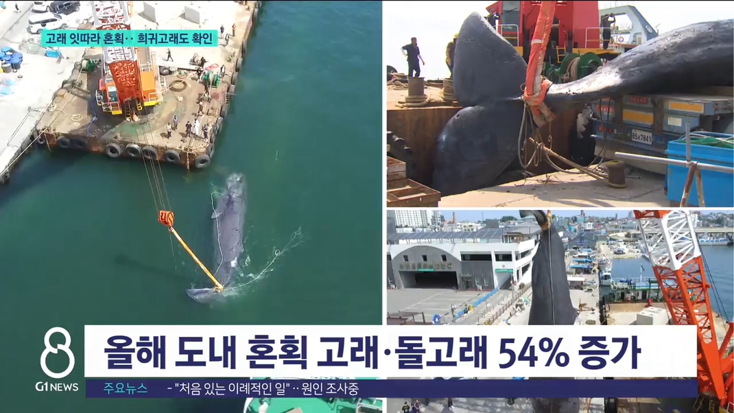 두 달 전엔 속초 앞바다에서 국내 최초로 멸종취약종인 향고래가 수면 위로 올라와 물줄기를 내뿜는 모습이 촬영되기도 했습니다.