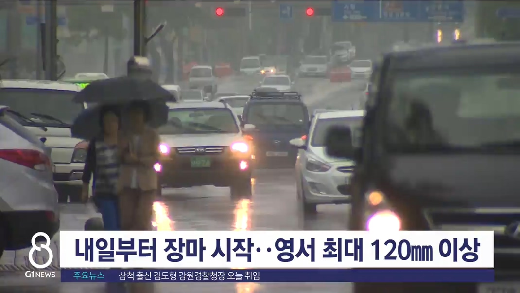 내일(23일) 강원도는 장마전선의 영향으로 아침에 영서지역을 시작으로 오후에는 도 전역으로 비가 확대되겠습니다.