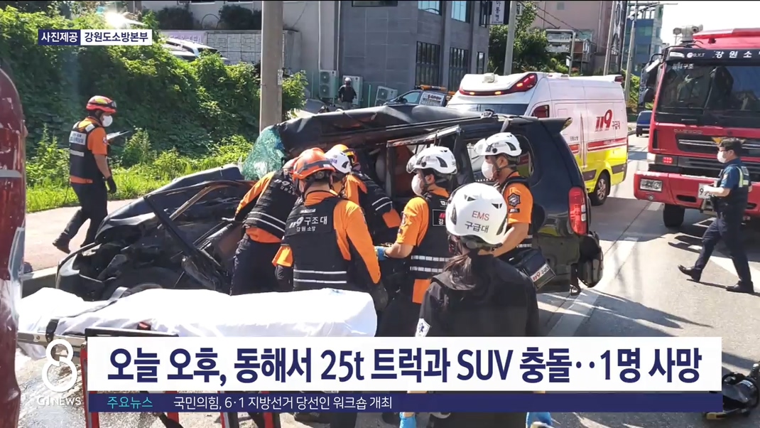 동해서 25t 덤프트럭·SUV 충돌‥20대 운전자 숨져
