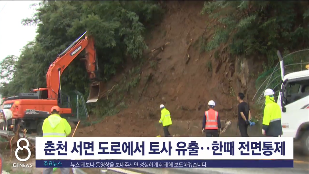춘천 지방도에서 토사유출‥한때 전면통제