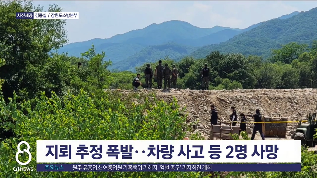 오늘 오전 9시 40분쯤 철원군 김화읍 도창리 유곡천에서 대전차 지뢰로 추정되는 폭발물이 터졌습니다.