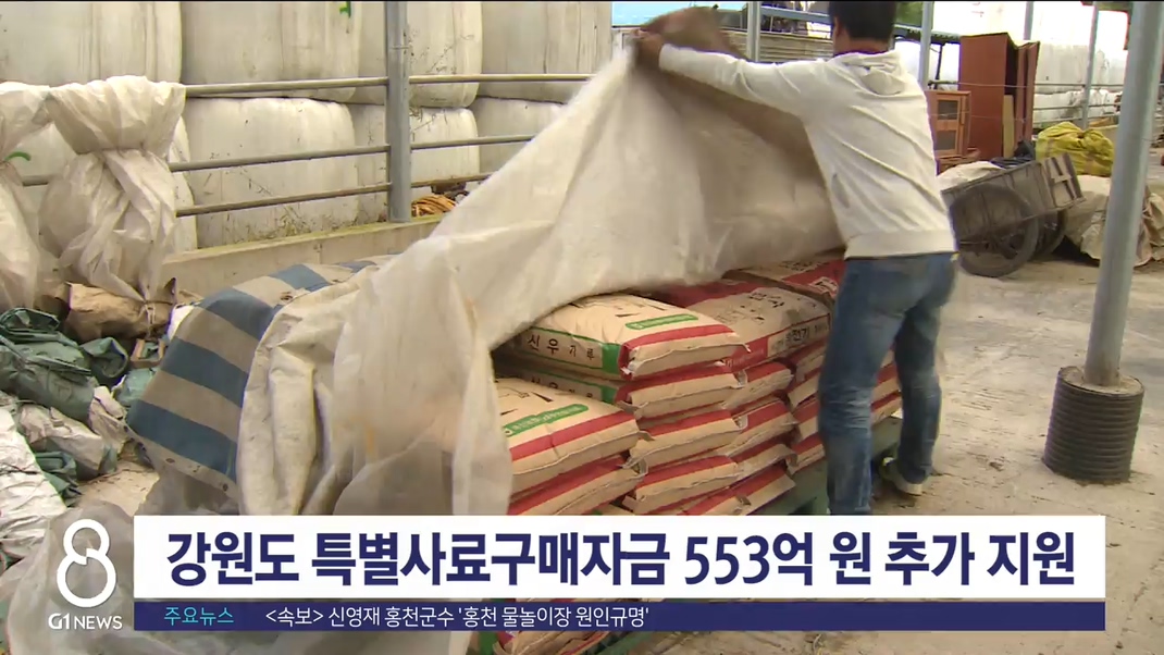 강원도는 사료의 주 원료인 곡물가격 상승으로 어려움을 겪고 있는 축산농가를 돕기 위해 긴급 특별사료 구매자금 553억 원을 추가 지원한다고 밝혔습니다.