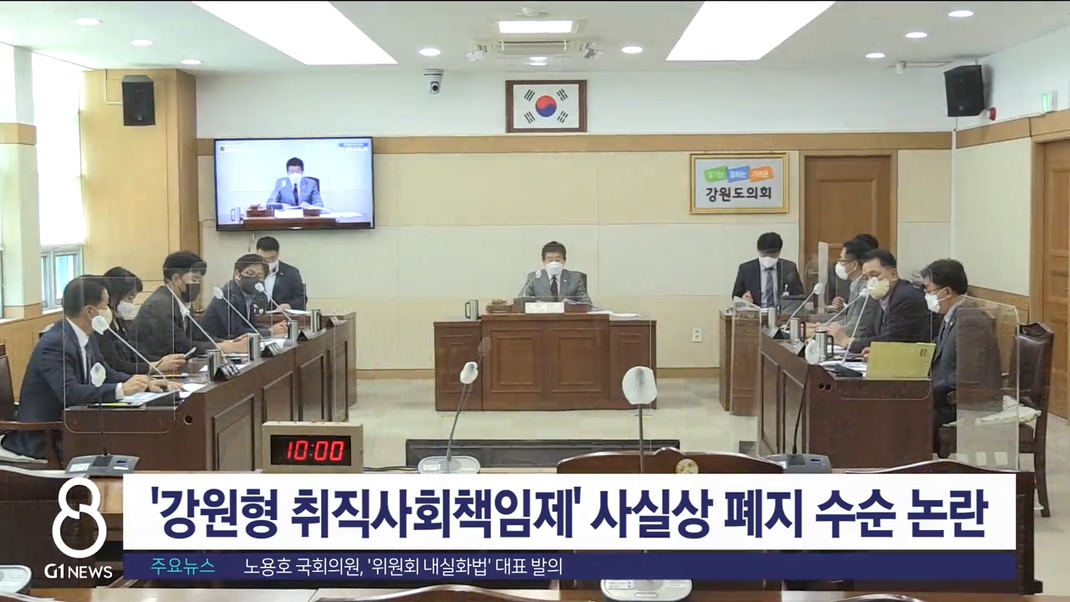 강원도의회 경제통상위원회에서 열린 '2022년도 강원도 경제진흥국 주요 업무 추진상황 보고'에서, 도 집행부는 "강원형 취직사회책임제는 연속성을 갖고 추진하려던 사업이 아니며, 기본적인 계획은 올해 종료된다"고 밝혔습니다.