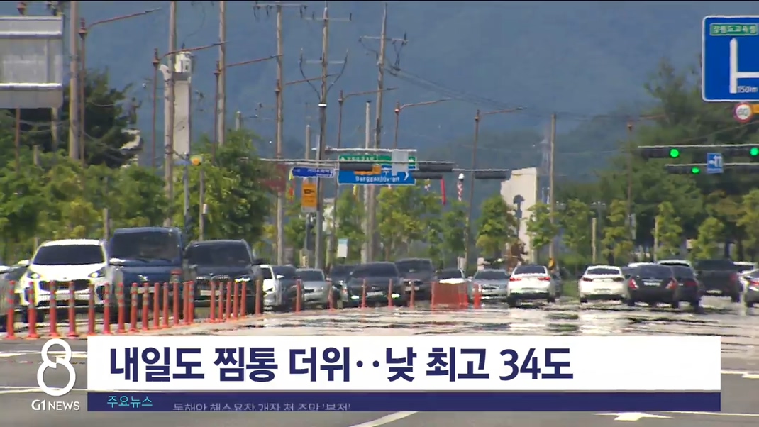 내일 낮 최고 기온은 영서지역이 32도에서 34도, 영동지역은 27도에서 29도로 오늘과 비슷하겠습니다.