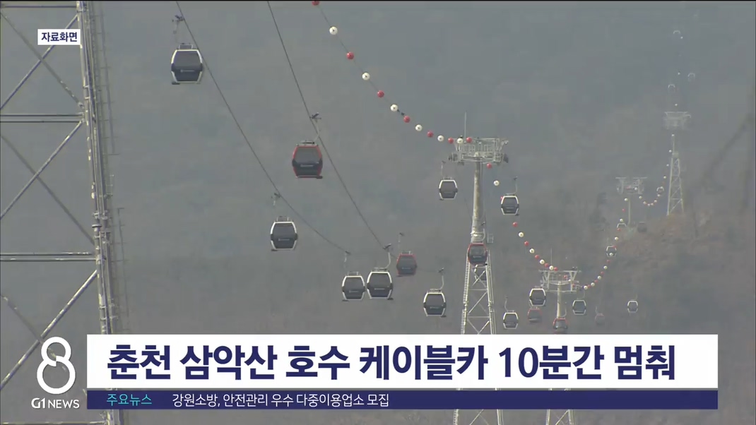 오늘(10일) 오전 11시 30분쯤, 춘천 삼악산 호수 케이블카가 10분 동안 멈춰서는 사고가 발생했습니다.