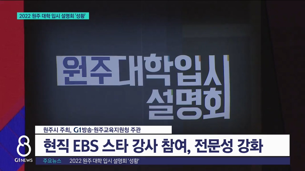 원주시가 주최하고, G1방송과 원주교육지원청이 주관한 이번 설명회에는 현직 EBS 스타 강사들이 나와 전문성과 공신력을 한층 높였습니다.