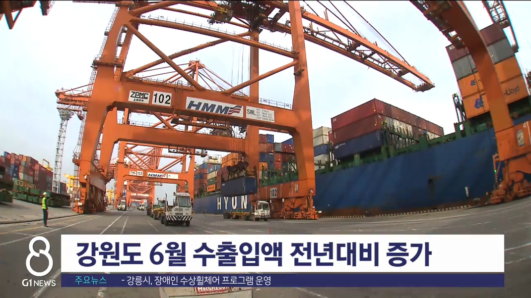지난달(6월) 강원도 수출입액이 지난해보다 증가한 것으로 나타났습니다.