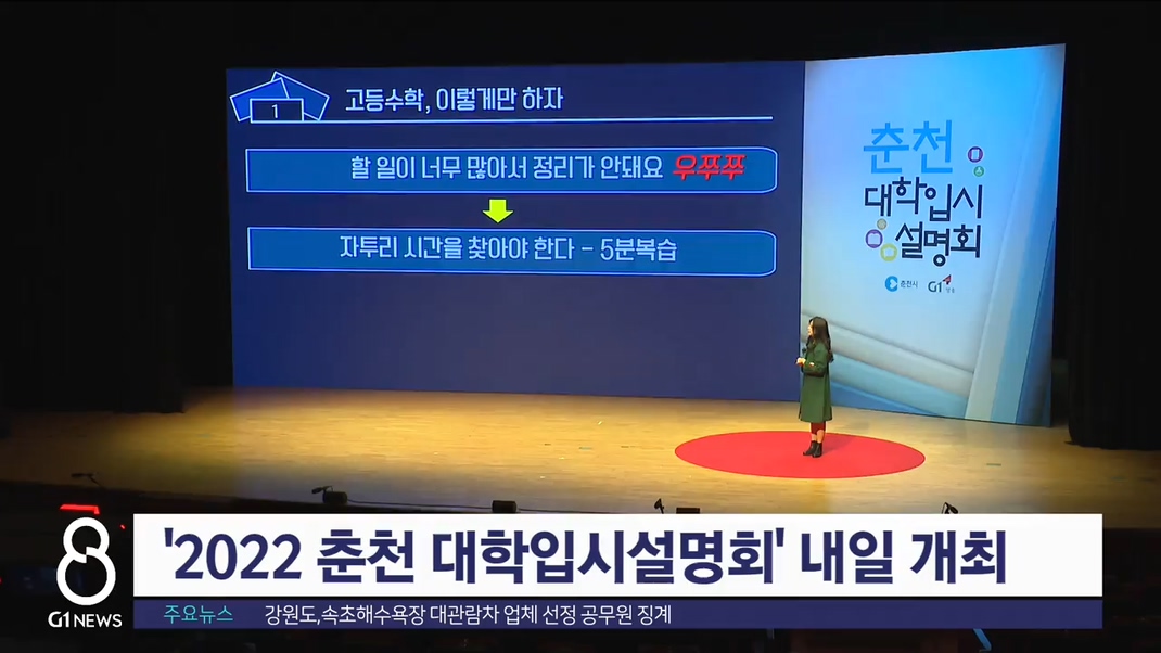 '2022 춘천 대학입시설명회'는 오는 30일 토요일 오전 9시부터 G1방송을 통해 방송될 예정입니다.