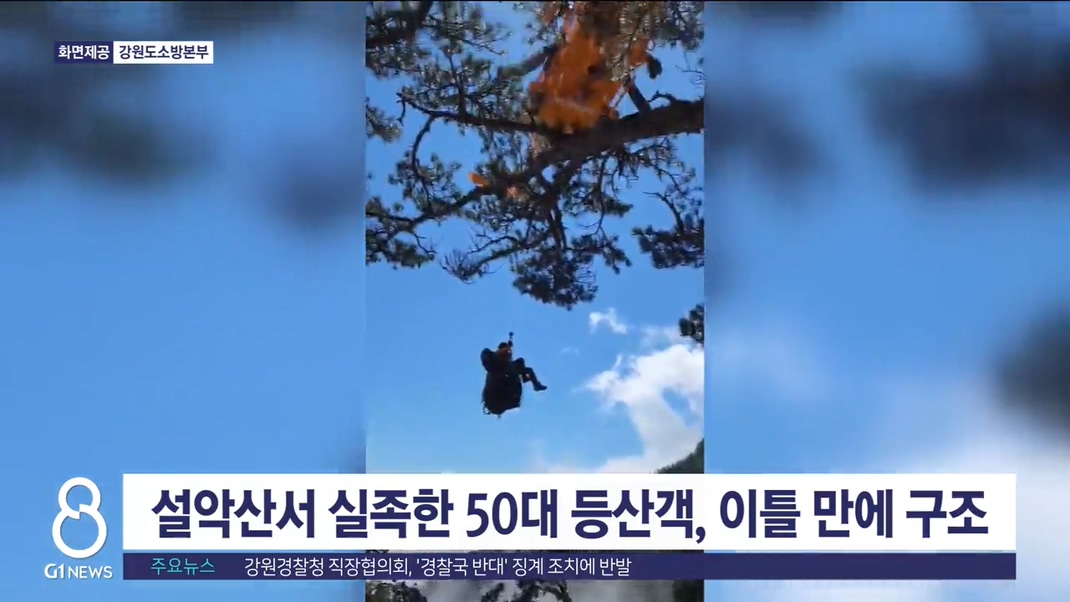 빗길과 짙은 안개 등으로 구조가 불가능해 비박을 한 후 오늘 오전 11시쯤 헬기로 안전하게 구조했다고 밝혔습니다.