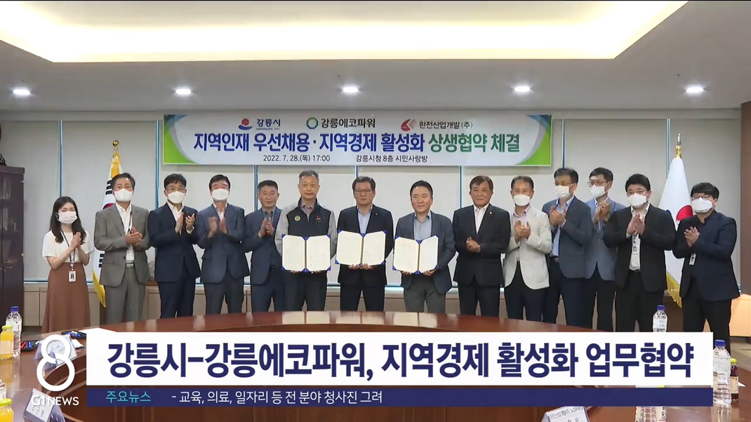 강릉시와 강릉에코파워는 오늘(28일) 시청에서 지역 인재 채용과 경제 활성화를 위한 업무협약을 맺었습니다.