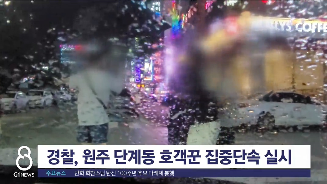 지난주 G1 뉴스의 원주 단계동 유흥거리 호객꾼 실태 보도와 관련해, 경찰이 집중 단속을 예고했습니다.
