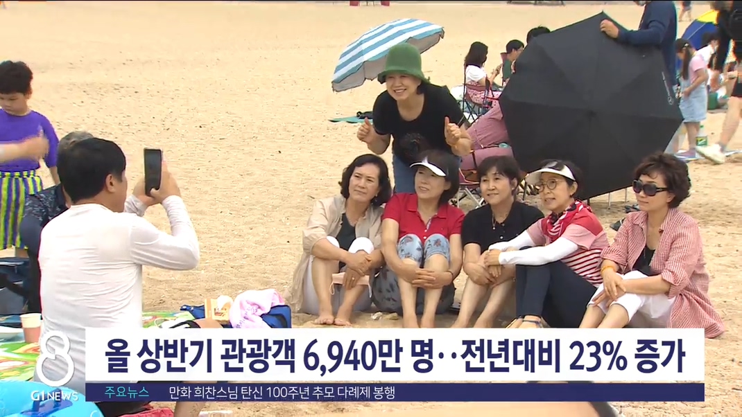 올 상반기 관광객 6,940만명..전년대비 23% 증가