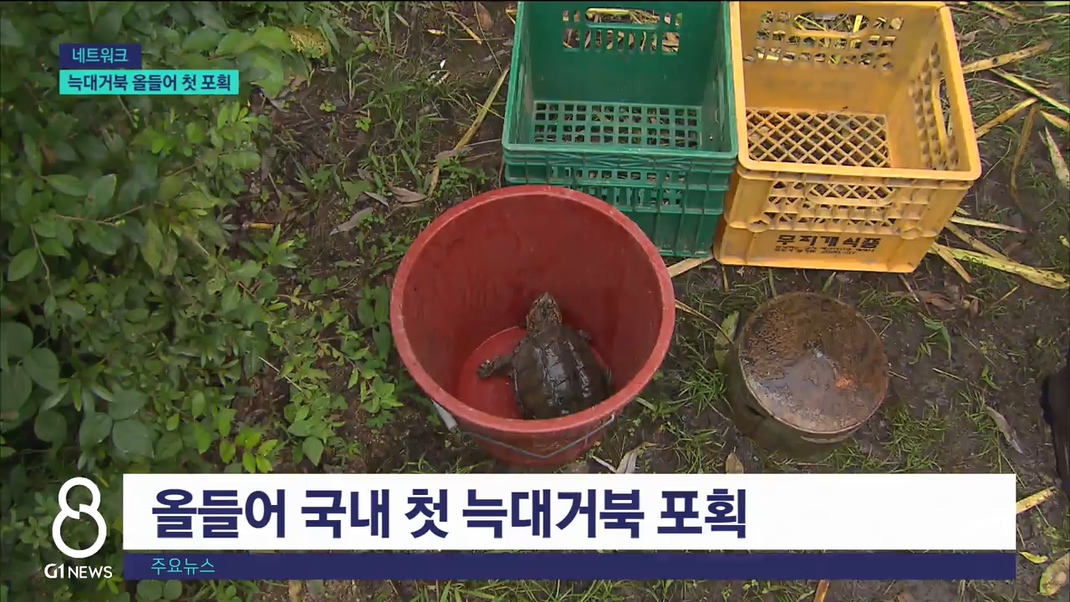 포식성이 강해 사람까지 공격하는 걸로 알려진 늑대거북이 청주의 한 아파트 단지 내 연못에서 포획됐습니다.