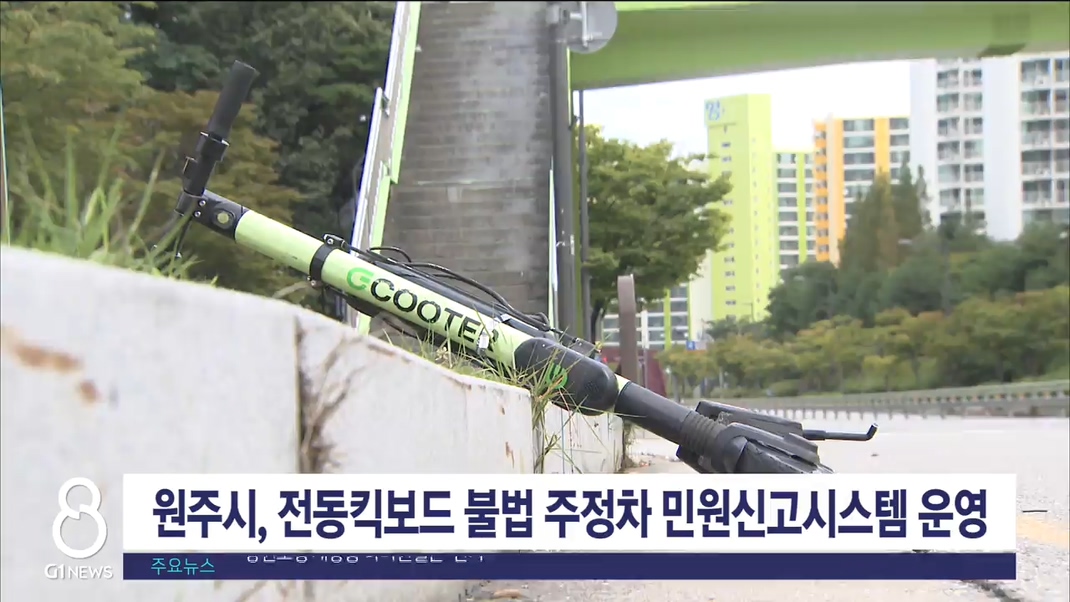 원주시가 내일(1일)부터 전국에서 두 번째로 공유 전동킥보드 불법 주정차 민원신고시스템을 운영합니다.