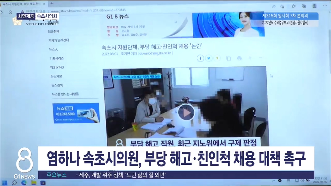 G1뉴스에서 어제 보도한 속초시 예산 지원단체의 부당해고와 친인척 채용과 관련해 속초시의회가 대책 마련을 촉구하고 나섰습니다.