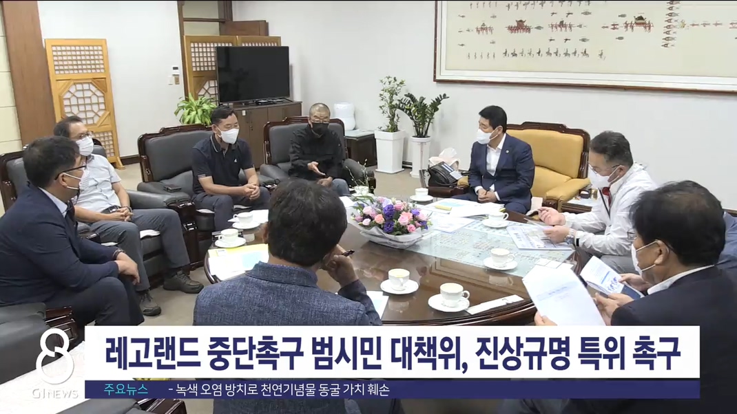 레고랜드 중단 촉구 범시민대책위 유진규 상임대표를 비롯한 관계자 5명은 권혁열 강원도의회 의장을 만나 레고랜드 관련 불공정 계약 전면 개정 추진을 위한 특별위원회 구성을 요구했습니다.