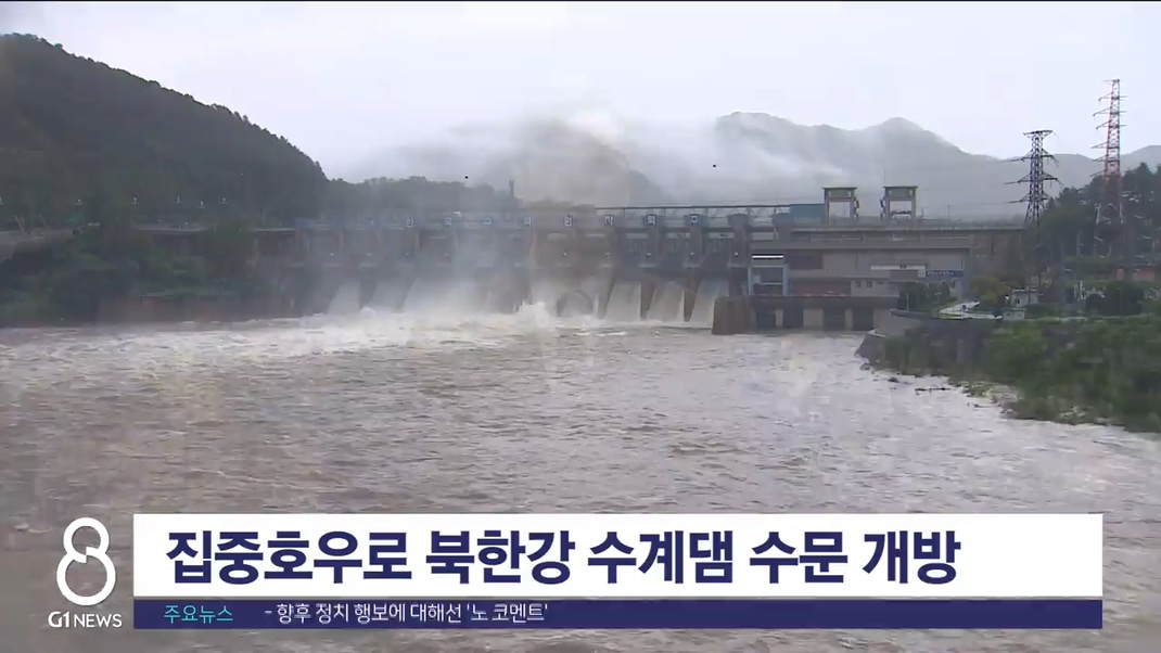 오늘 중부 지역을 중심으로 쏟아진 집중호우로 춘천댐 등 북한강 수계댐들이 일제히 수문을 열고 수위 조절에 들어갔습니다.