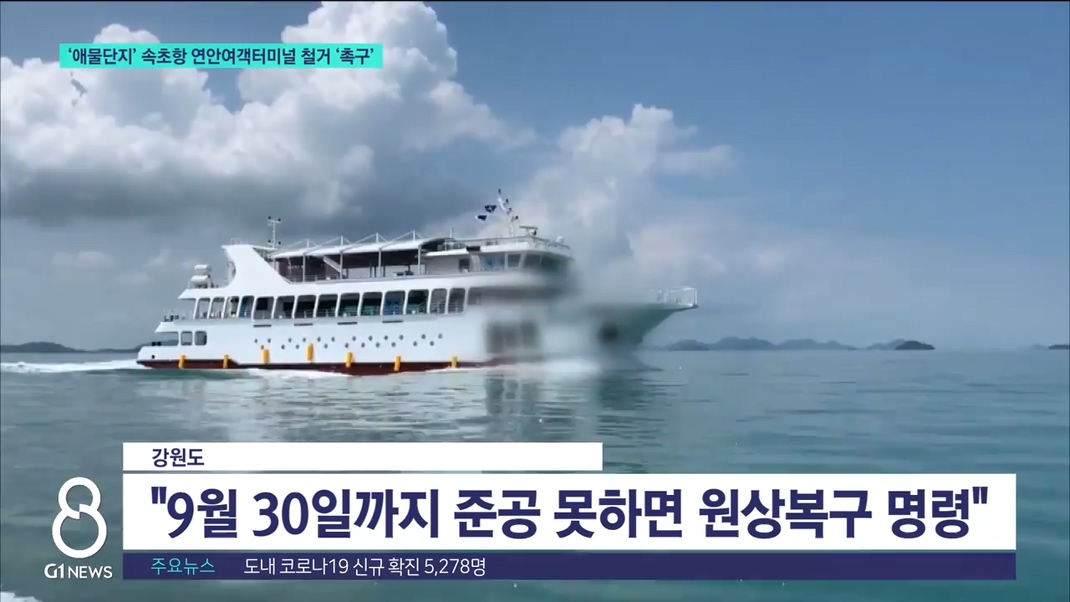 오는 9월 30일까지 선박을 구해 해양수산부로부터 여객운송사업면허를 받아오지 않으면, 원상복구 명령을 내리겠다고 밝혔습니다.