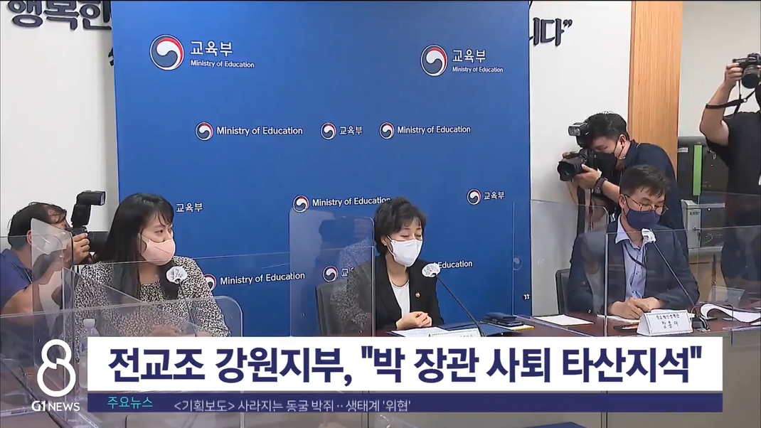 전교조는 또 "박 장관의 사퇴를 타산지석으로 삼아야 한다"며 "공립유치원 확대와 원주교육지원청 이전 등의 사업이 좌초 위기에 놓인 만큼 여러 교육주체의 의견을 민주적으로 수렴해야 한다"고 덧붙였습니다.