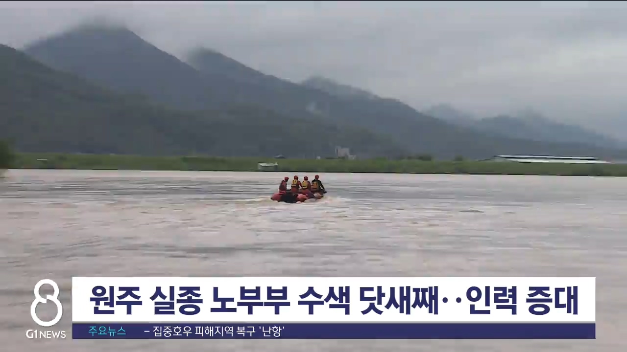 지난 9일, 원주시 부론면에서 폭우 속에 실종된 80대와 70대 부부에 대한 수색이 닷새째 계속되고 있습니다.