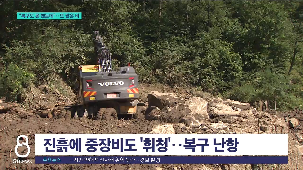 중장비도 휘청일 정도로 땅이 질어 응급 복구마저 애먹고 있는 마당에,
