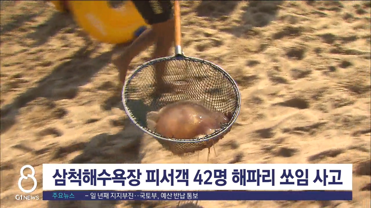 강원도환동해본부는 어제(13일) 삼척해수욕장에서 피서객 42명이 독성을 가진 노무라입깃해파리에 쏘였다고 밝혔습니다.
