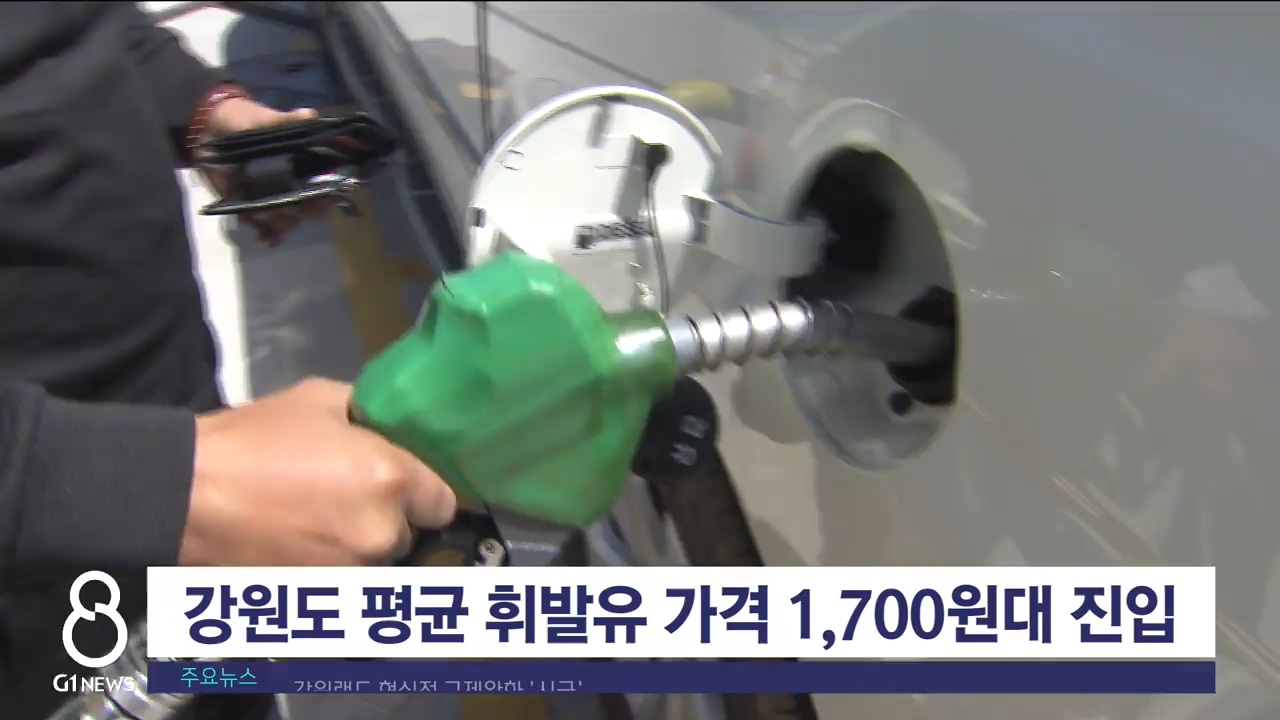 국제 유가 하락 등의 여파로 강원도내 주유소의 평균 휘발유 가격이 1,700원 대로 떨어졌습니다.