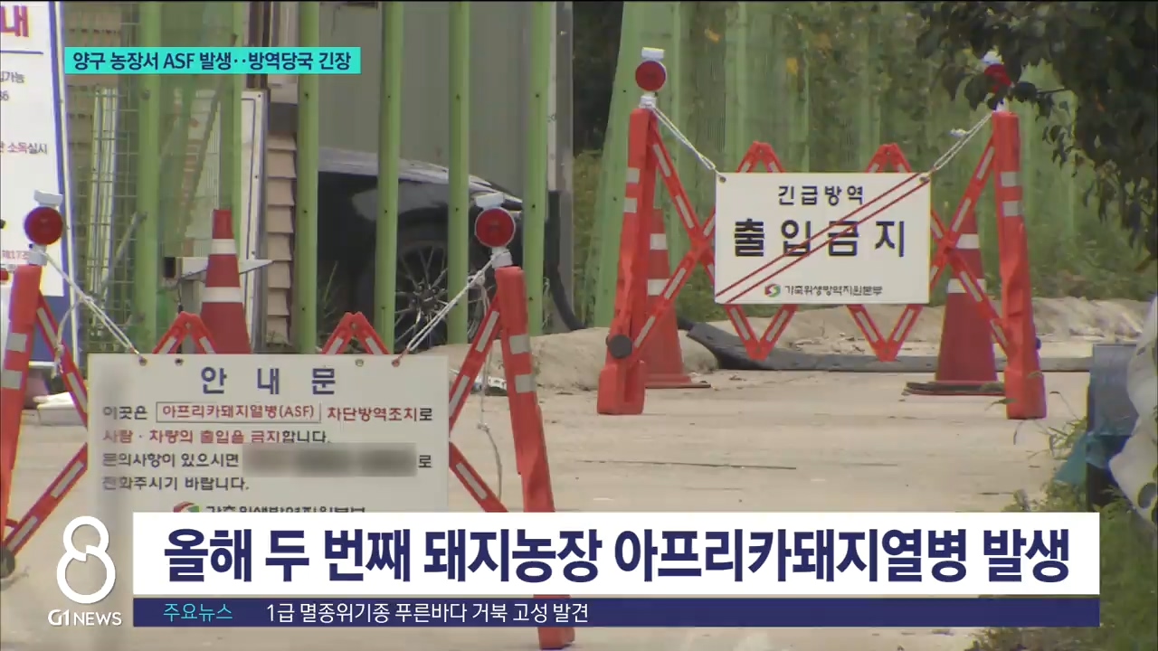 어젯밤 양구의 한 돼지농장에서 아프리카돼지열병 'ASF'가 또 다시 발생했습니다.