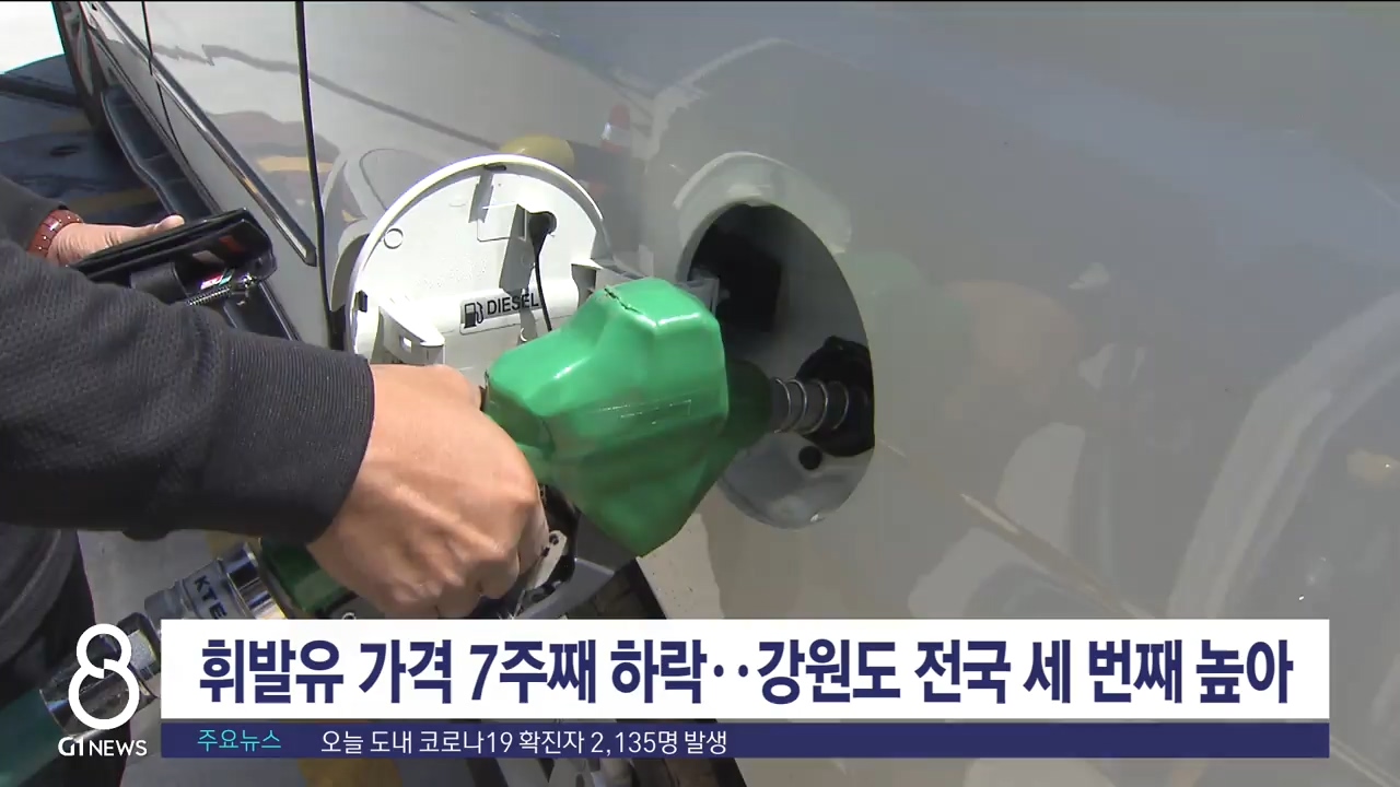 휘발유 가격 7주째 하락..강원도 전국 세번째 높아