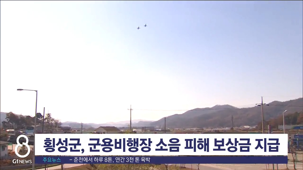 횡성지역 군용비행장 소음 피해 주민들에서 보상금이 지급됩니다.