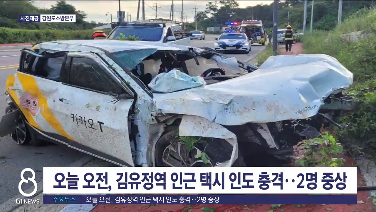 오늘 오전, 김유정역 인근 택시 인도 충격..2명 중상