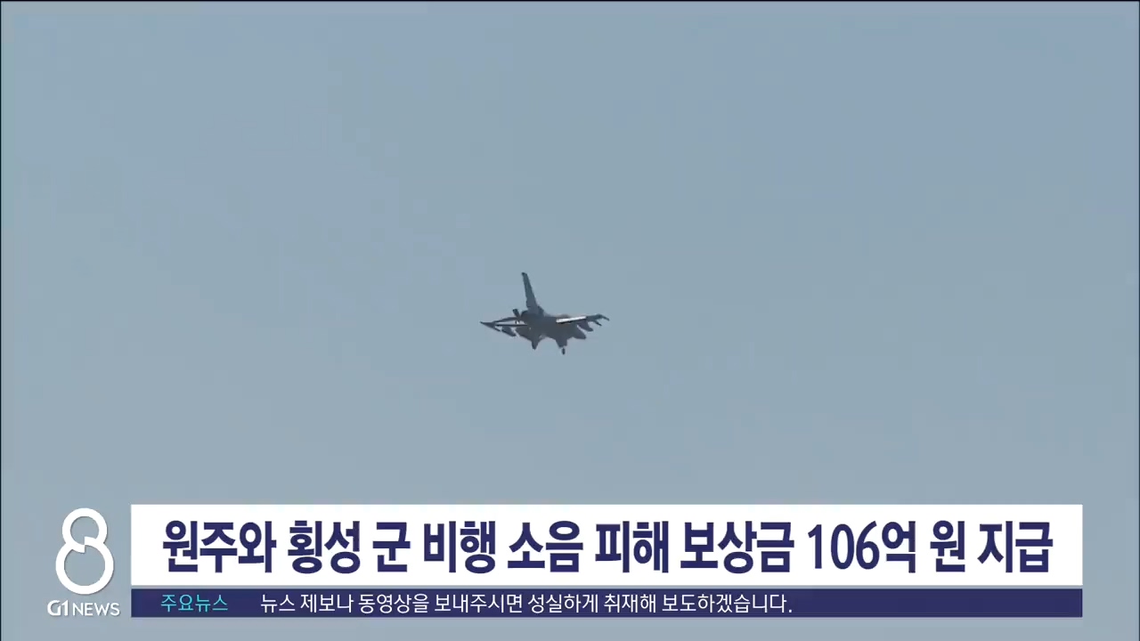 원주와 횡성 군비행기 소음 피해 지역주민 5만 3천여 명에게 106억여 원의 보상금이 순차적으로 지급됩니다.