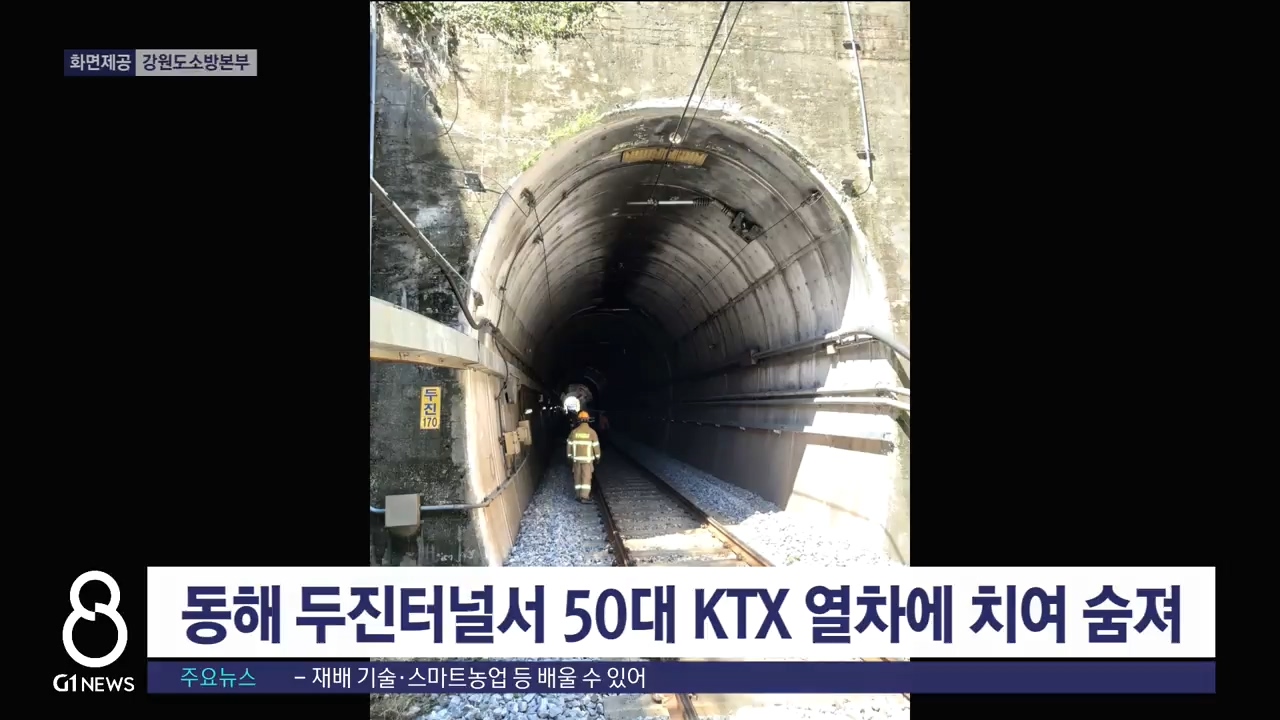 오늘 낮 12시 49분쯤, 동해시 부곡동 두진터널에서 50대 남성 A씨가 영동선 KTX 서울행 열차에 치였습니다.