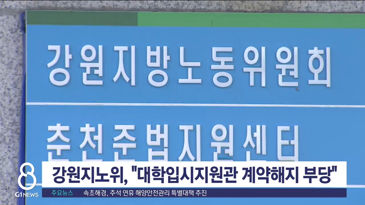 강원지노위,"도교육청 대학입시지원관 계약해지 부당"
